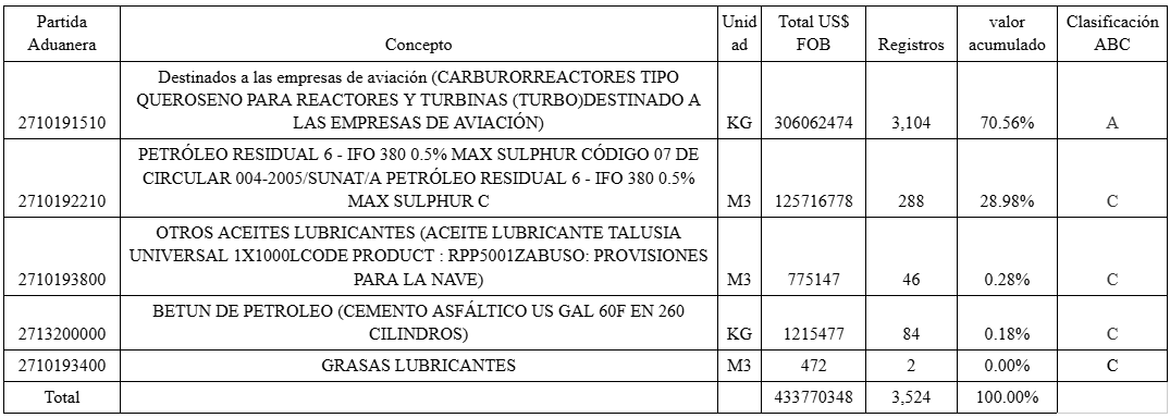 Ley de Pareto para la Clasificación ABC productos exportados