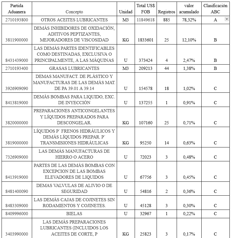 Ley de Pareto para la Clasificación ABC productos importados